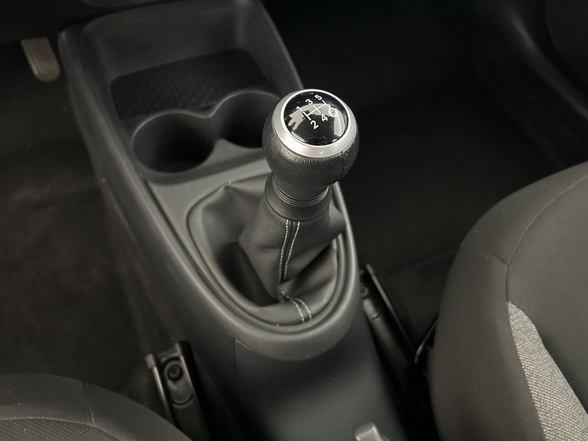 - Levier de vitesse en cuir synthetique avec surpiqures et pommeau avec contour chrome